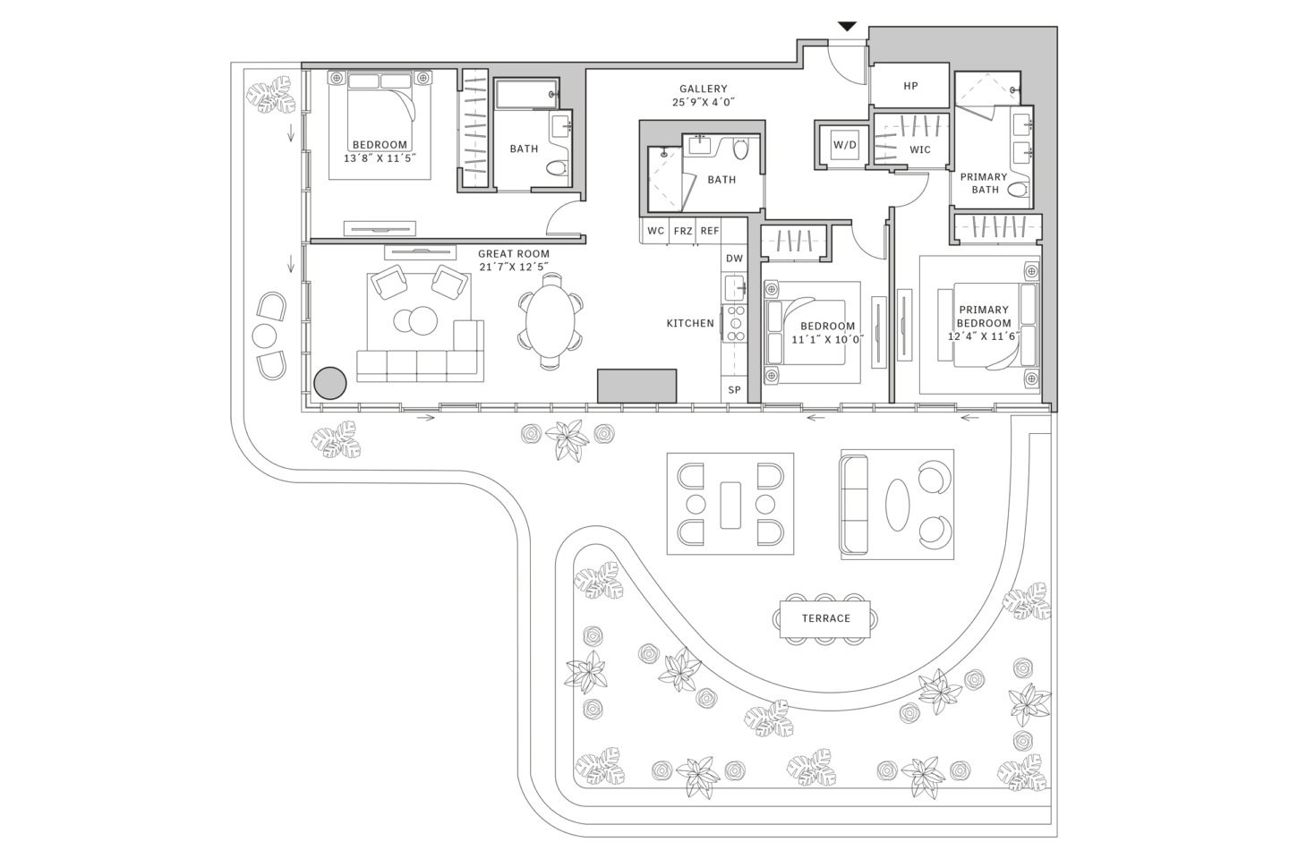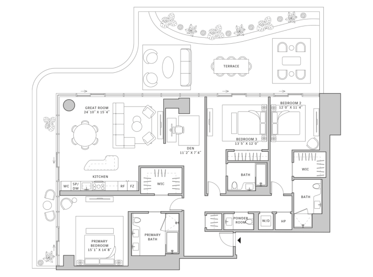 • 10’ floor-to-ceiling windows and sliding glass doors with direct access to wrap-around terraces