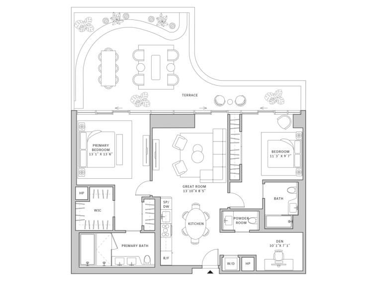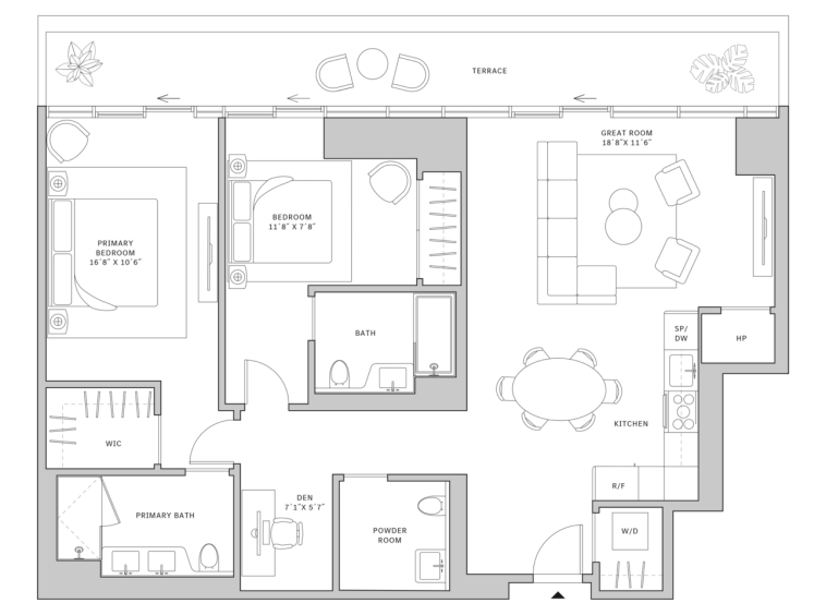 • 10’ floor-to-ceiling windows and sliding glass doors with direct access to 5’ deep terraces
